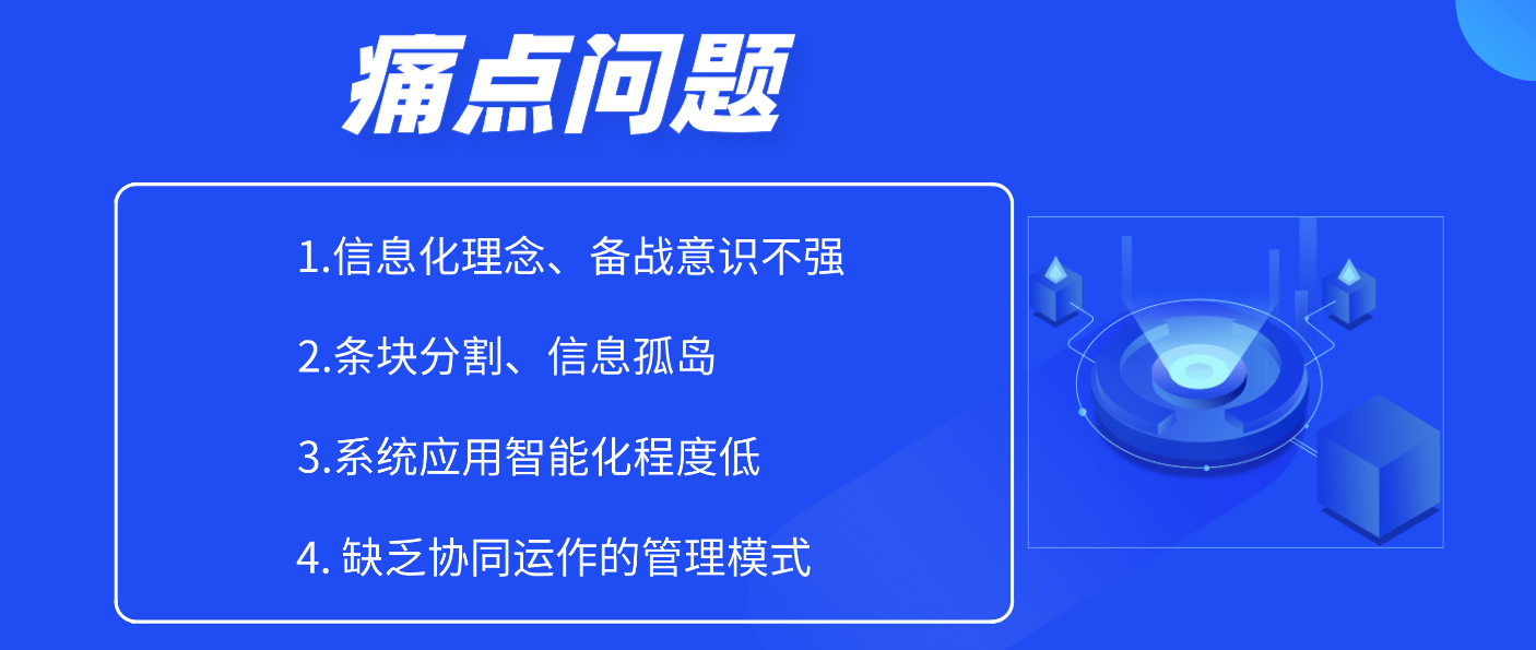 營(yíng)區(qū)中的安全、資源、公共設(shè)施等信息無法整合,部門間系統(tǒng)數(shù)據(jù)缺乏共享,不能系統(tǒng)融合,無法發(fā)揮整體綜合效應(yīng)。