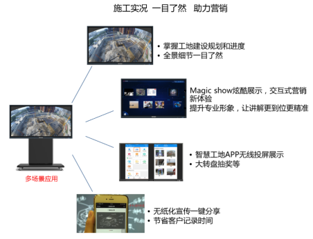 游戲、大轉盤抽獎往往可以吸引更多的顧客駐足停留,平板同時可安裝各類應用小游戲,增加觀眾、客戶的交互式體驗感和回頭率,提高觀眾參與的積極性,提升古城工地售樓處的服務質量!