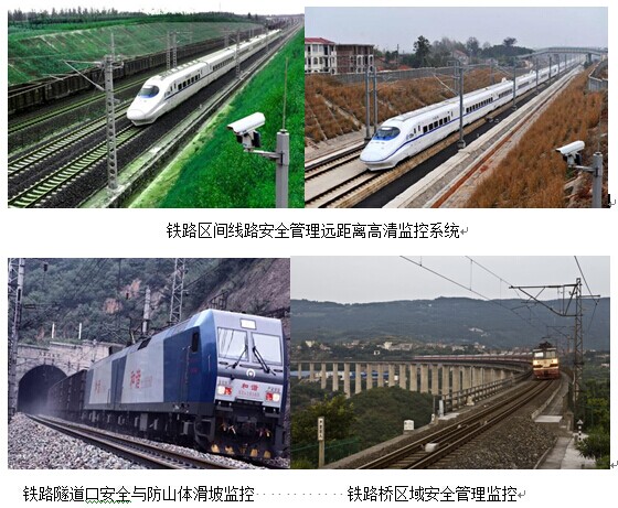 系統(tǒng)具有全天候、跟蹤速度快、覆蓋面廣、作用距離遠、圖像穩(wěn)定清晰的特點,能為高速鐵路安全運營管理、鐵路路況、突發(fā)事故、山體滑坡、橋區(qū)安全、隧道安全、機車安全、行車安全控制提供裝備技術上的強有力支持。