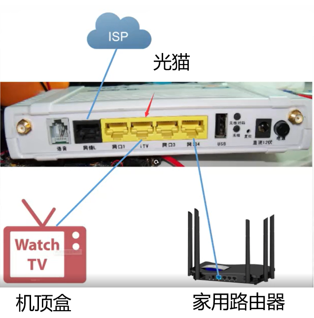 ●光貓一般由運營商提供,用于連接運營商的線路,可以將運營商線路中的IPTV流量和寬帶流量分離開。