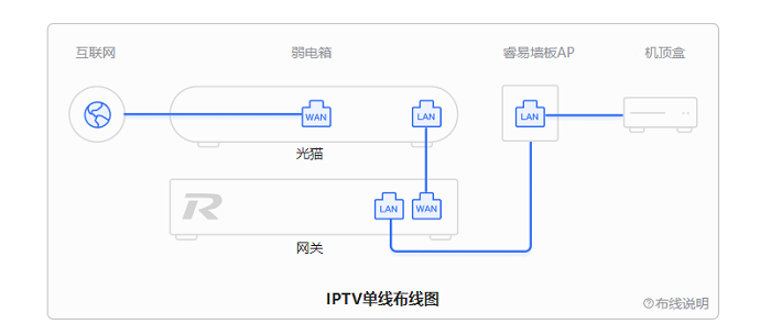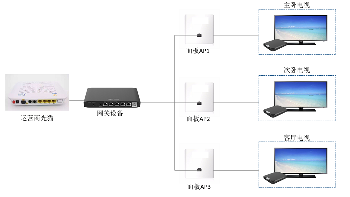 網(wǎng)關設備均支持IPTV功能,配合支持IPTV功能的睿易面板AP,可在網(wǎng)關和AP之間建立IPTV數(shù)據(jù)傳輸通道。