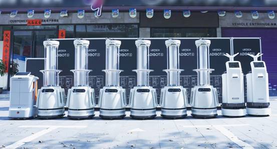 優必選隔離酒店科技防疫解決方案,提供全場景科技防疫產品與服務,測溫、消毒、遞送等多種智能機器人齊同上陣,各顯神通。