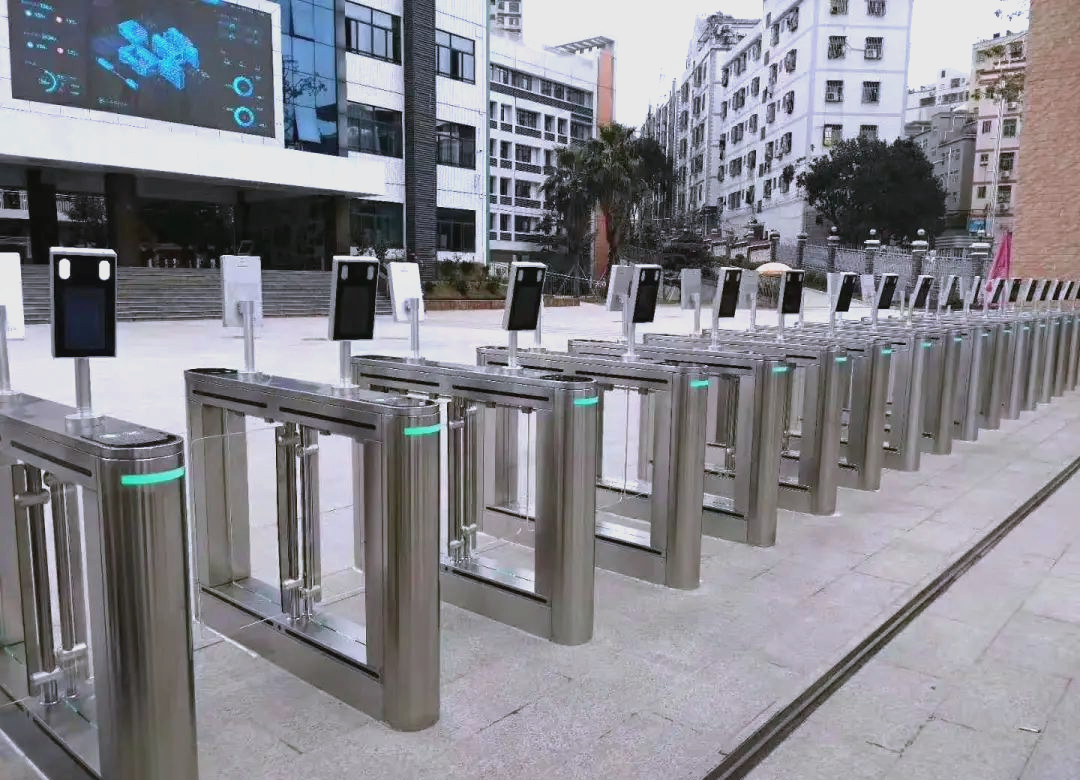 圖2展示了配備人臉識別組件的人員通道閘機。這種閘機廣泛應用于大型活動安保、企業辦公樓門禁等場合,通過實人通行和即時比對放行,確保了場所的安全與秩序。