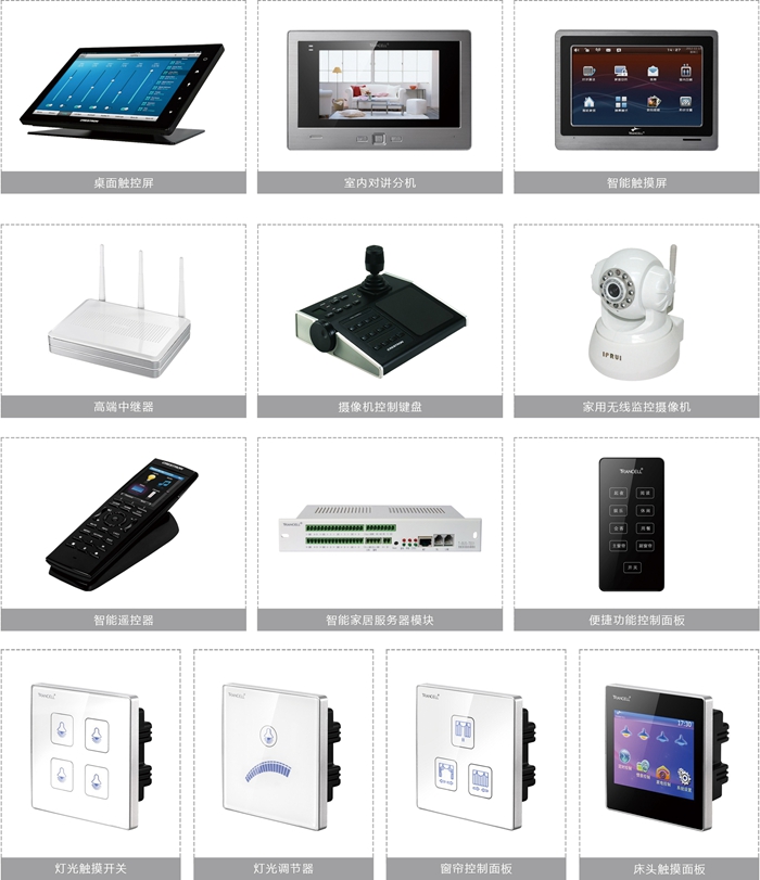 1、該系統涵蓋二十個分類:控制主機(集中控制器)、智能照明系統、電器控制系統、家庭背景音樂、家庭影院系統、對講系統、視頻監控、防盜報警、電鎖門禁、智能遮陽(電動窗簾)、暖通空調系統、太陽能與節能設備、自動抄表、智能家居軟件、家居 布線系統、家庭網絡、廚衛電視系統、運動與健康監測、花草自動澆灌、寵物照看與動物管制。